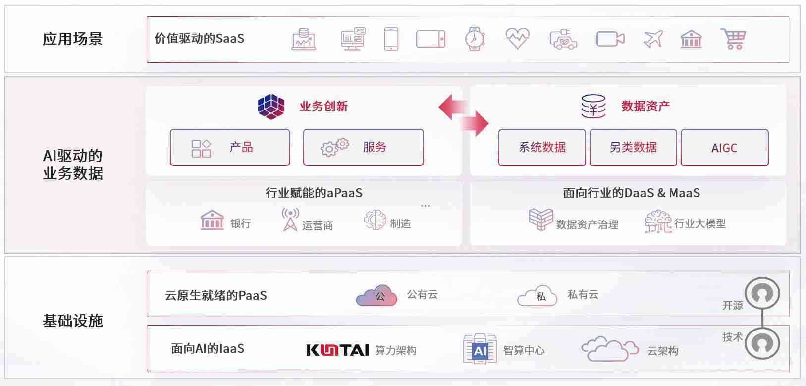数字时代,,,围绕企业数字化转型的关键要素,,KDPAY数码开创性的提出数云融合战略和技术体系框架,,着力在云原生、、、、数字原生、、、、AI原生和信创产业上架构产品和服务能力,,,为处在不同数字化转型阶段的快消零售、、、、汽车、、金融、、、、医疗、、、、政企、、、教育、、、、运营商等行业客户提供泛在的敏捷IT能力和融合的数据驱动能力,,,构建跨界融合创新的数字业务场景和新业务模式,,,,助力企业级客户建立面向未来的核心能力和竞争优势,,全面推动社会的数字化、、、智能化转型升级。。